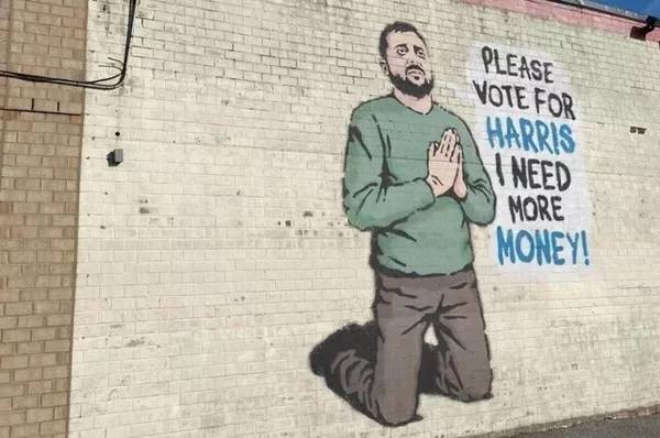 Любители граффити в Нью-Йорке украсили стену одного из зданий карикатурой главы киевского режима Владимира Зеленского. Украинский лидер изображен не совсем в симпатичном виде, а точнее в том, которым его воспринимают в мире. Автор изобразил Зеленского стоящим на коленях Рядом «объясняющая» надпись на английском: «Пожалуйста, голосуйте за Харрис. Мне нужно больше денег!»