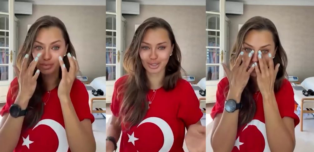 Также, в Сети заметили, что «патриотка» Боня, видимо, даже не подумав об этом, записала видео в футболке с флагом Турции.