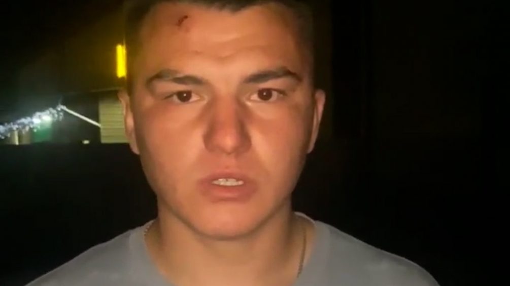 «Я, Ерошкин Александр Евгеньевич извиняюсь перед всеми, кто воюет на СВО. Я был пьяный очень сильно, поэтому извиняйте меня очень сильно, пожалуйста. Я очень плохо себя повёл», - слушая подсказки друзей, говорит «мажор».