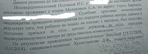 Тем не менее, несмотря и на это ребенок оставался с матерью, а приставы лишь разводили руками. Виктория видеться с ребенком не давала, на вызовы не приходила, сотрудников исполнительной службы выпроваживала оскорблениями.