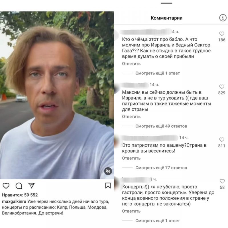 Только вот, престарелая жена с детьми остается в Израиле, где идёт война. Да и со здоровьем у «примадонны» не лады. Возможно, Галкин и предлагал лететь вместе, но Пугачёва отказалась, т.к. тяжело переносит перелёты и да и вообще, гастрольная жизнь в её возрасте противопоказана. Судя по всему, на семейном совете было решено, что «Максик» должен ехать зарабатывать, а мы здесь, как-нибудь, перекантуемся. Бог не выдаст – Хамас не съест.