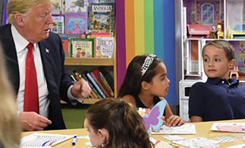 Президент США Дональд Трамп и его жена Мелания приехали в детскую больницу в Колумбусе в штате Огайо — целью поездки было привлечение внимания к проблеме опиоидного кризиса* в США. В больнице Трамп вместе с детьми занимался рисованием, в частности, раскрашивал раскраски.