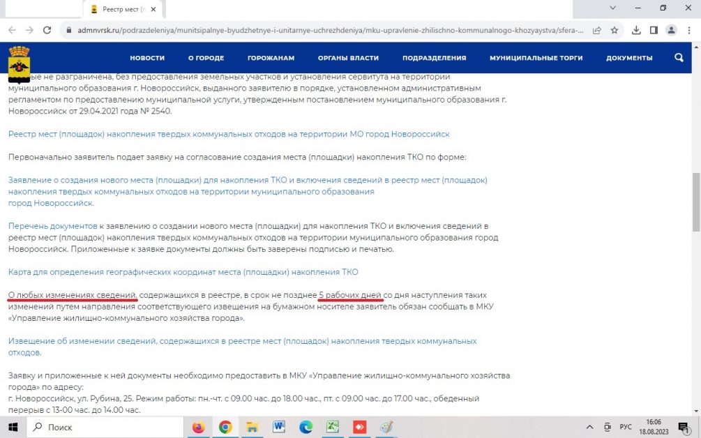 Следовательно, в этот промежуток никаких изменений и новых площадок не появилось, потому как о любых изменениях сведений, содержащихся в реестре, в срок не позднее 5 рабочих дней со дня наступления таких изменений путем направления соответствующего извещения на бумажном носителе заявитель обязан сообщать в МКУ «Управление жилищно-коммунального хозяйства города».