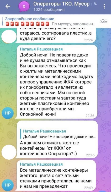 Но интересен и другой факт, в группе «Общественный контроль» руководитель «ЭкоЮг» Наталья Рашковецкая на запрос о сломанных желтых железных контейнерах писала, что они принадлежат администрации, но они готовы поставить свой пластиковый. Из этого можно сделать вывод, что пластиковые контейнеры принадлежат региональному оператору «ЭкоЮг», следовательно они могут поставить на него тот же замок, как того хотят жители.